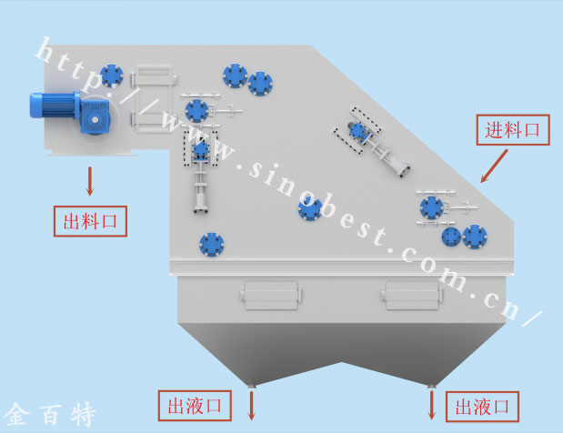 提取液進入履帶壓濾分離機中,經(jīng)過雙履帶擠壓、過濾,渣和液分離。