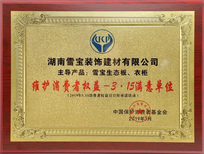 - 生態(tài)板十大名牌雪寶榮獲2019維護(hù)消費(fèi)者權(quán)益-3.15滿意品牌稱號(hào)