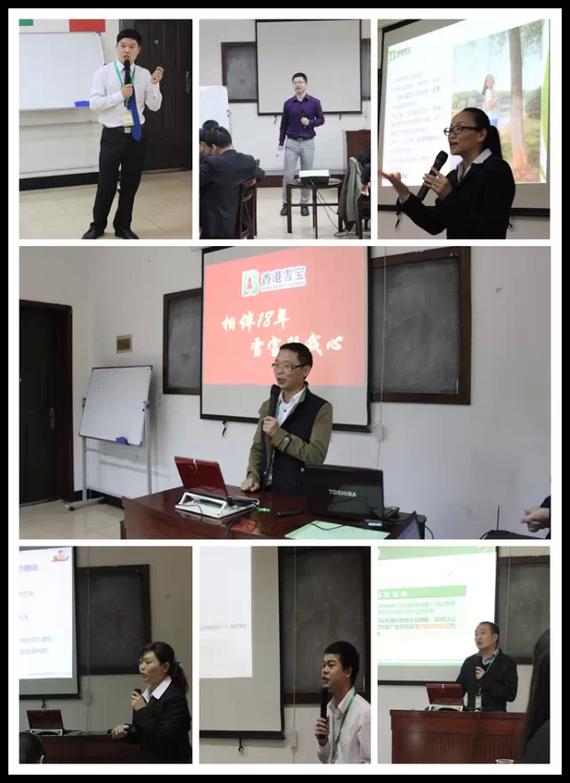 培訓(xùn)室里歡笑聲、鼓掌聲、口號(hào)聲此起彼伏。兩天的課程,總經(jīng)理、副總、培訓(xùn)講師宋老師及其他一些講師風(fēng)趣幽默、旁征博引,深入淺出地闡述了包括“雪寶發(fā)展歷程”、“板材知識(shí)”、“專賣店陳列”、“廣告投放”、“客戶維護(hù)”、“客戶拓展”、“專賣店形象”等內(nèi)容,并不時(shí)與臺(tái)下積極互動(dòng),現(xiàn)場氣氛既緊張又活躍。