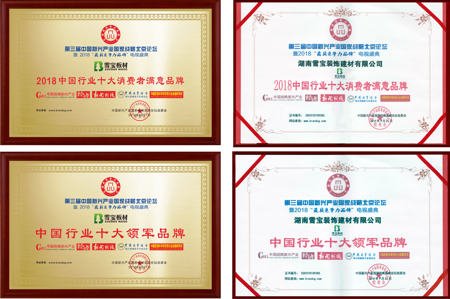 鑒于雪寶的行業(yè)影響力,2018年9月20日至22日期間,兒童房健康板雪寶板材受邀出席毗鄰北京釣魚臺(tái)國賓館的中國科技會(huì)堂舉行的第三屆中國新興產(chǎn)業(yè)國家戰(zhàn)略北京論壇暨2018“最具競(jìng)爭(zhēng)力品牌”電視盛典,并榮獲“中國行業(yè)十大領(lǐng)軍品牌”、“2018中國行業(yè)十大消費(fèi)者滿意品牌”兩項(xiàng)大獎(jiǎng)!受到了評(píng)委會(huì)、全國新興產(chǎn)業(yè)權(quán)威專家和主流媒體的極大肯定!