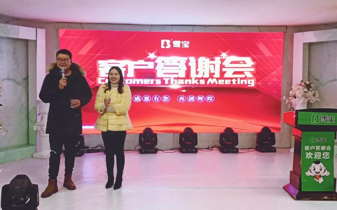 2020年1月9日,雪寶品牌湖北荊州店誠(chéng)邀了荊州地區(qū)近200多位優(yōu)秀合作伙伴共聚一堂,特舉辦客戶答謝盛會(huì)以感恩廣大客戶對(duì)雪寶品牌的長(zhǎng)期支持。本次活動(dòng)由雪寶品牌培訓(xùn)策劃部攜手雪寶品牌荊州運(yùn)營(yíng)中心共同舉辦.