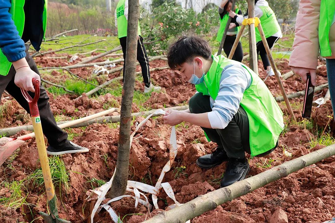 早上八點剛過,參與植樹的雪寶家人戴著口罩,拿著鐵鍬、鋤頭、水桶等工具,早早來到植樹地點,在測量體溫、簽到、領(lǐng)取心愿卡后,有序來到植樹區(qū)域,大家分工合作,一起種下一棵棵樹苗,他們個個熱情高漲、干勁十足,他們幾個人一組,扶直樹苗、揮鍬培土、踩實壓緊,確保做到保質(zhì)、保量、保成活。