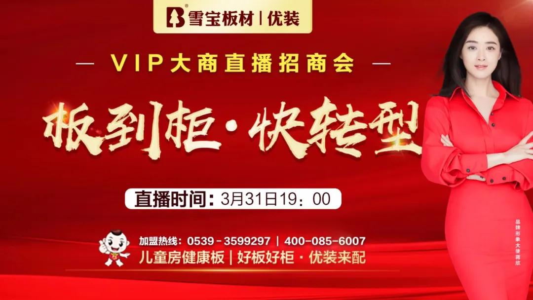 2020年3月31日晚7點讓我們相約雪寶板材丨優(yōu)裝【華北站】VIP大商直播招商會共同開啟主題為“板到柜·快轉(zhuǎn)型”的建材行業(yè)轉(zhuǎn)型升級財富峰會。