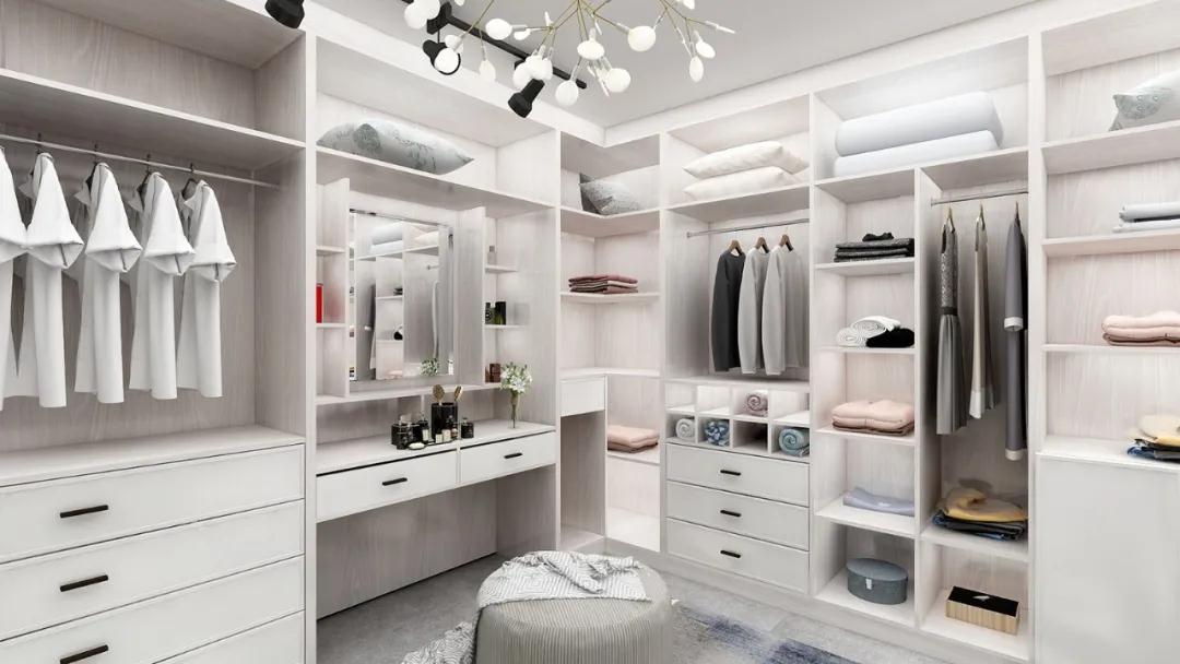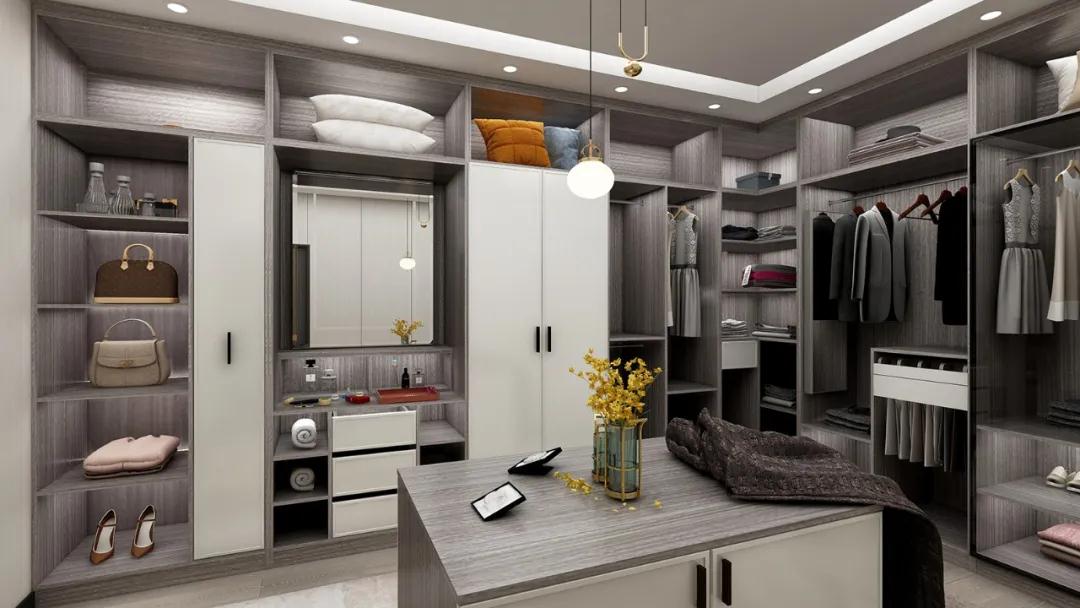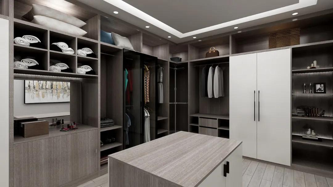 空間布局:一般來說,衣帽間的常規(guī)尺寸是在4㎡以上,獨立式衣帽間對住宅面積的要求更高。因為人需要有轉身換衣的空間,如果面積太小的話,會讓您產生一種壓抑的感覺。