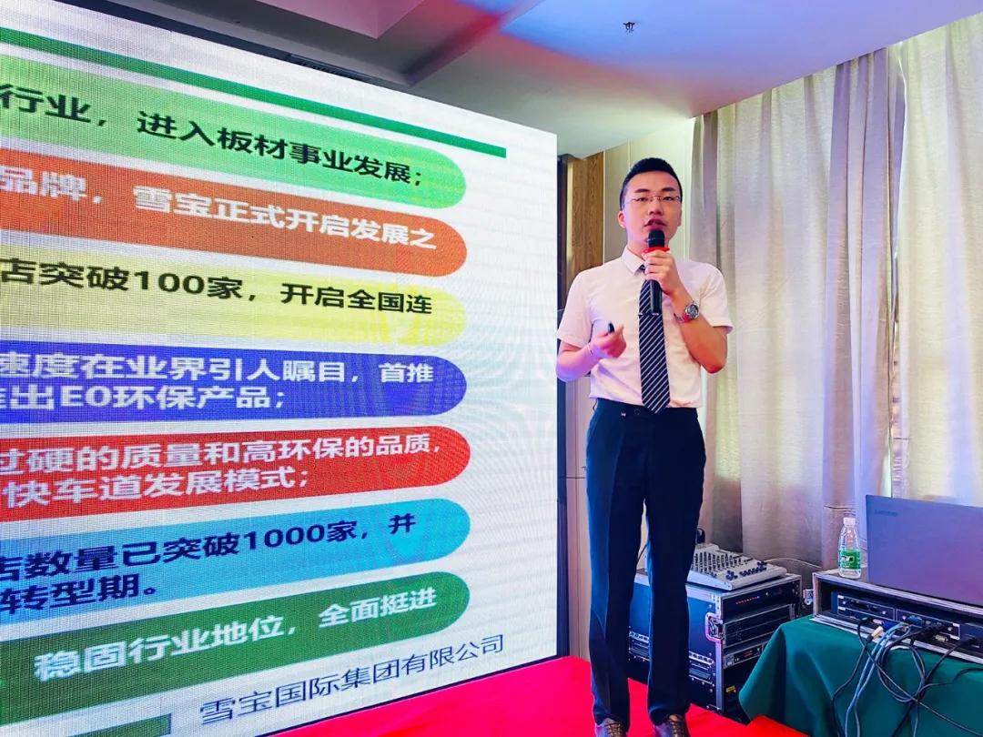 雪寶集團(tuán)華北營(yíng)銷副總陳家義先生現(xiàn)場(chǎng)細(xì)致講解雪寶家具板產(chǎn)品介紹及核心賣點(diǎn)以及招商加盟、訂貨優(yōu)惠政策宣導(dǎo);