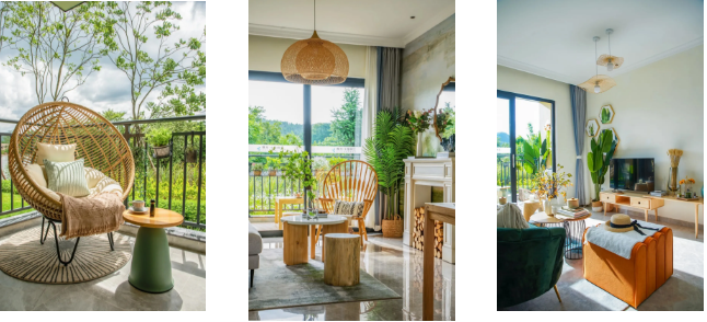 田園風(fēng)格居室變裝“綠色空間”,結(jié)合家具陳設(shè)等布置綠意,或做重點(diǎn)裝飾與邊角點(diǎn)綴,還可沿窗布置,融于居室,創(chuàng)造出自然簡(jiǎn)樸高雅的氛圍。