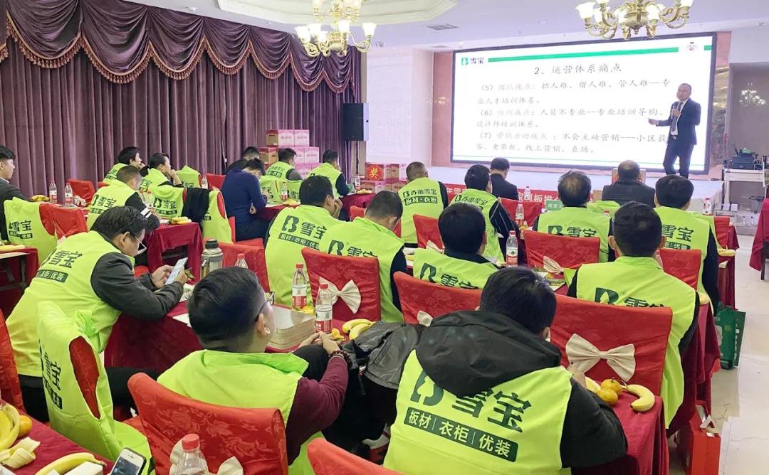 雪寶集團華北營銷副總陳家義先生現(xiàn)場講解《干掉家具廠的十大痛點》,通過結(jié)合行業(yè)現(xiàn)狀及發(fā)展趨勢進行延伸,深入剖析傳統(tǒng)板材商、家具廠的痛點需求,同時,圍繞雪寶品牌獨特的差異化優(yōu)勢以及板材、封邊、門配、五金、培訓(xùn)、軟件、營銷、運營8大系統(tǒng)展開賦能,真正幫助每一位經(jīng)銷商朋友掌握市場營銷致勝方法。