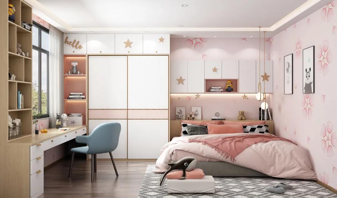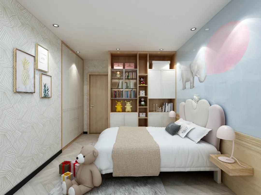 兒童房布局設計:由于兒童房大多在次臥或者客臥,面積相對比較小,而且兒童房需要承擔多種功能,所以需要合理的家具布局,以此給活潑好動的孩子更多活動空間。