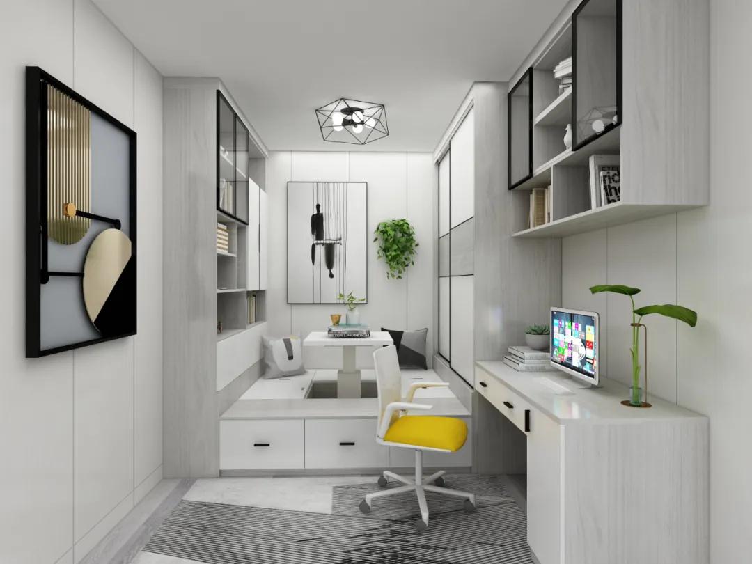 另外,書桌、柜體和床頭整體相連的設計,能合理規(guī)劃布局。