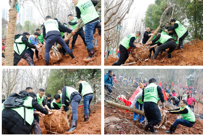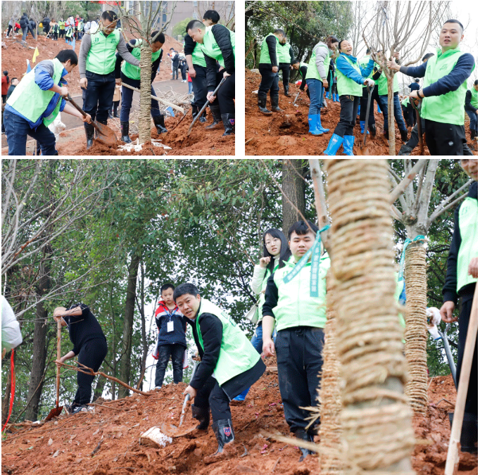 扶苗、培土、扶正、踩實……在滿是黃泥的植樹區(qū)域,大家手拿鐵鍬、鋤頭熱情投入到勞動中,細致認真地做好每一道工序,現(xiàn)場一片熱火朝天。一排排新栽樹苗在春日的朝氣中迎風挺立,為初春大地增添了一抹生機。