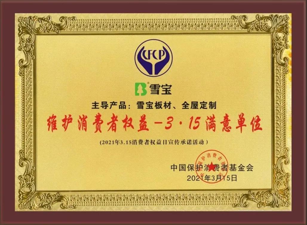 作為品牌年度大考,很多企業(yè)都避之不及,然而,也有一些品牌根本無懼3·15,他們的產(chǎn)品好評(píng)率居高不下,是真正的口碑產(chǎn)品。就在3·15消費(fèi)者權(quán)益保護(hù)日這天,雪寶憑借優(yōu)質(zhì)的產(chǎn)品、滿意的服務(wù)和良好的口碑,品牌主導(dǎo)產(chǎn)品雪寶板材、全屋定制榮獲中國(guó)保護(hù)消費(fèi)者基金會(huì)授予的【2021“維護(hù)消費(fèi)者權(quán)益-3.15滿意單位”】榮譽(yù)稱號(hào),表彰其在行業(yè)內(nèi)樹立的誠信經(jīng)營(yíng)、重質(zhì)守信、優(yōu)質(zhì)服務(wù)等標(biāo)桿典范!