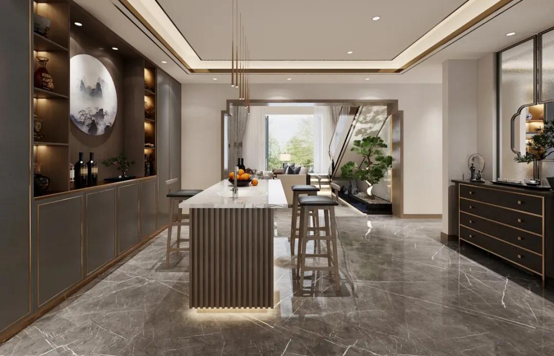 隨著消費(fèi)市場(chǎng)的需求劇增,含蓄秀美、淡雅墨韻的新中式風(fēng)越來越成為風(fēng)靡全球的流行風(fēng)格。在保留中式核心元素,并推陳出新,通過現(xiàn)代材質(zhì),比如巖板和柔光大理石瓷磚、布藝家具、盆景、屏風(fēng)裝飾等,既保留了中式巧妙兼柔,又賦予了新的表現(xiàn)形態(tài),即大而不空,厚而不重。