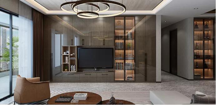 不張揚(yáng),不喧嘩,純粹的裝飾線條美帶來的純凈和簡單,從細(xì)節(jié)演繹出生活的精致度。一門到頂?shù)拈L門設(shè)計,虛實(shí)結(jié)合,讓空間多了一絲現(xiàn)代感的襯托,電視柜的收納功能更是不容置疑。
