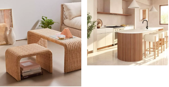 家具的造型,最好選擇圓潤曲線設(shè)計,強(qiáng)化空間的軟糯可愛感,增強(qiáng)趣味性,如圓滾滾的沙發(fā)、圓弧桌椅、S型的落地?zé)、邊角圓弧的床具等。