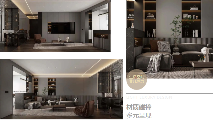 高級(jí)灰配上溫暖卡其、溫厚木飾搭配冷峻金屬,這種極致的低調(diào)與張揚(yáng),加之玩轉(zhuǎn)色彩的協(xié)奏,將空間的明媚度與活力值直線拉滿,將摩登氣質(zhì)與意式氣韻交互并序,展現(xiàn)出新都市生活空間更具包容度的非凡魅力。