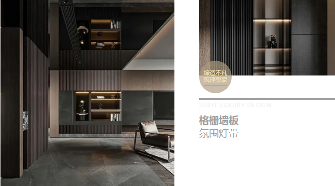 木飾面拼接格柵條,讓線條的相互交織協(xié)調(diào)著空間的動(dòng)靜關(guān)系。簡(jiǎn)約的格柵線條在講述真正的永恒經(jīng)典,脫離一切浮華和繁復(fù),從生活的本質(zhì)出發(fā)。