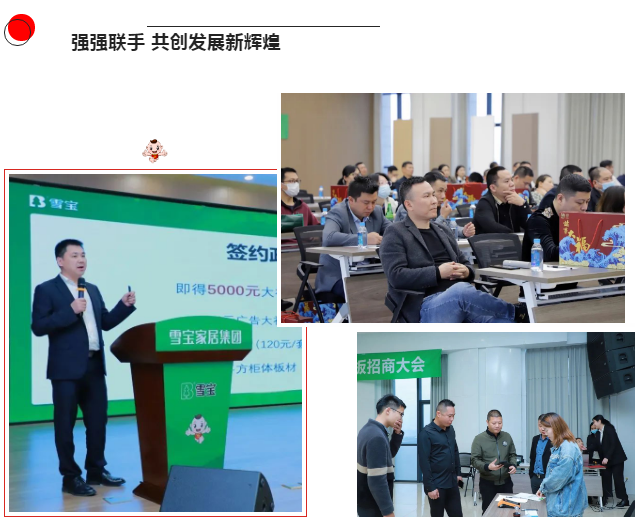 為雪寶代言,為發(fā)展聚勢(shì);在利好的政策刺激下,大家陸續(xù)簽約成為雪寶家具板的城市合伙人,時(shí)對(duì)未來的合作充滿期待。