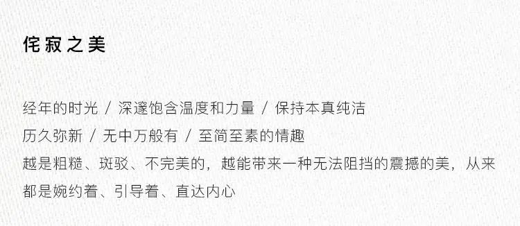 侘寂風(fēng),是萬籟俱寂的美好,不是極簡,不是空無,侘寂有它獨(dú)有的淡泊、歲月感。