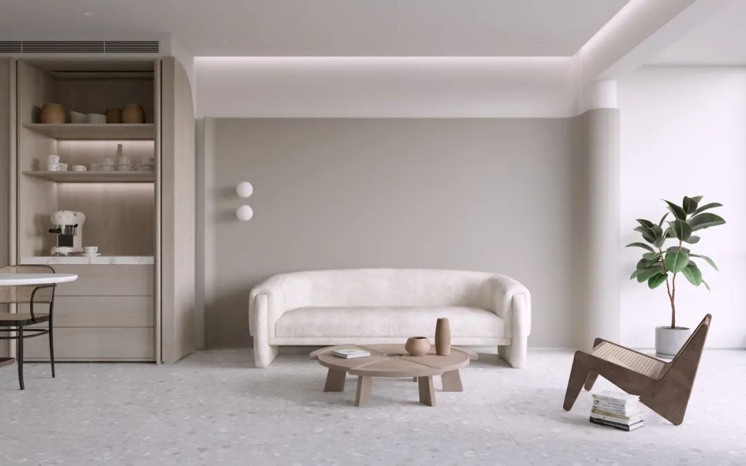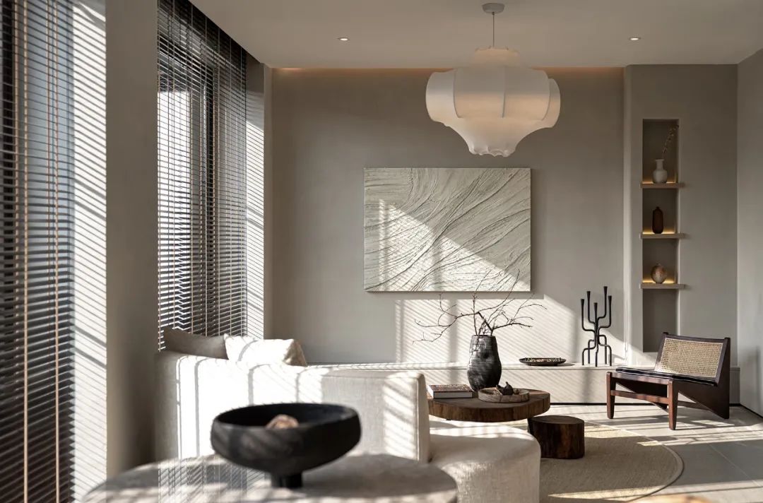 侘寂風(fēng)對軟裝的要求也比較高,多選擇線條感較強(qiáng)的家具,可勾勒出空間的立體感;
