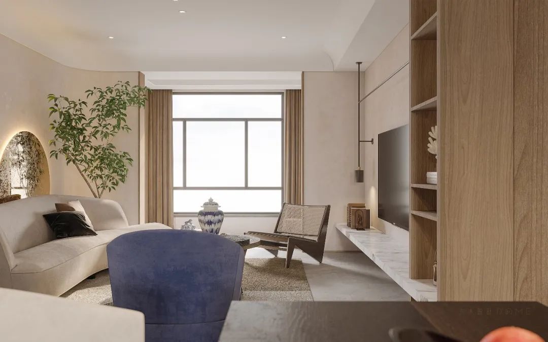 中國自古講究對稱均衡,而侘寂風(fēng)本身講究的美學(xué)原則是不對稱美學(xué),墻面裝飾、家居擺件,都可以以不對稱的形式呈現(xiàn),營造空間個(gè)性美感。