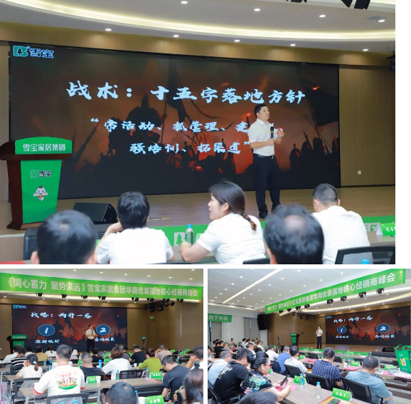 會(huì)上,雪寶家居集團(tuán)副總經(jīng)理李杰先生現(xiàn)場(chǎng)授課《雪寶優(yōu)裝落地運(yùn)營(yíng)》,從現(xiàn)狀分析、品牌定制、生產(chǎn)加工、市場(chǎng)競(jìng)品等方面深入探討并明確發(fā)展趨勢(shì)。