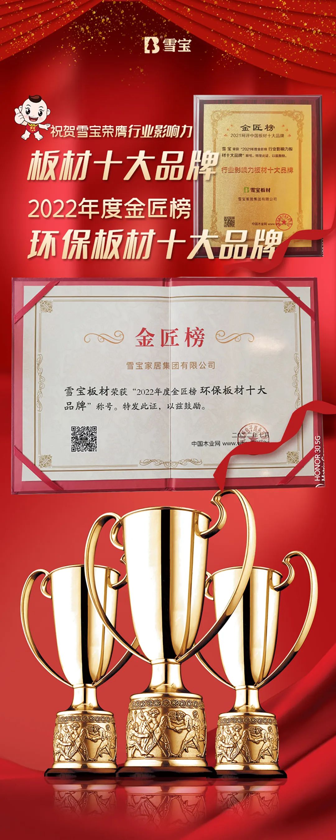 匠心精神,成就品質(zhì)之選;榮譽(yù)加冕,彰顯品牌力量。雪寶板材作為中國板材行業(yè)領(lǐng)軍品牌、中國板材國家品牌,品牌實(shí)力、行業(yè)影響力、品牌知名度以及消費(fèi)者信賴度一直以來名列前茅,位于頭部品牌行列。此次獲得2022中國板材高峰論壇第八屆中國板材金匠榜行業(yè)影響力“板材十大品牌”、“環(huán)保板材十大品牌”榮譽(yù),是對雪寶品牌實(shí)力的最好見證,以及廣大消費(fèi)者對其的信賴與認(rèn)可,更是推動品牌持續(xù)增長的源動力。