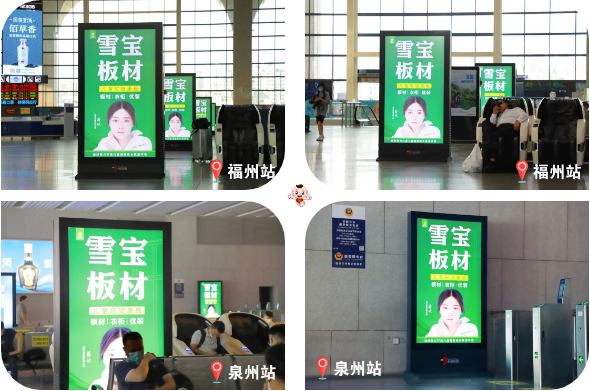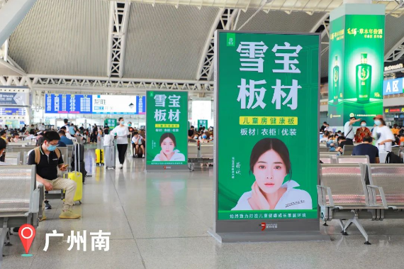 高鐵以“國家新名片”的國家高度為品牌傳播背書,為品牌形象帶來無以倫比的附加值,是品牌傳播的制高點,具有不可替代性,唯一性,排他性,傳播到達率 100%。雪寶板材以強勢之姿打出華南區(qū)域高鐵站群廣告沖擊波,代表行業(yè)品牌高端形象,讓品牌直接觸達目標人群,實現(xiàn)品牌強有力的曝光。