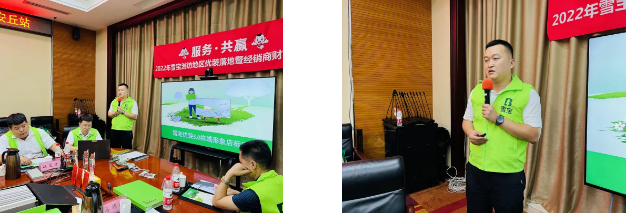 產(chǎn)品好也要具備過硬的專業(yè)產(chǎn)品知識進行宣導(dǎo)才能體現(xiàn)它的價值!會上,華北營銷中心孫林講解雪寶五金產(chǎn)品介紹、趙蘭仕講解雪寶家具板/PET產(chǎn)品介紹。