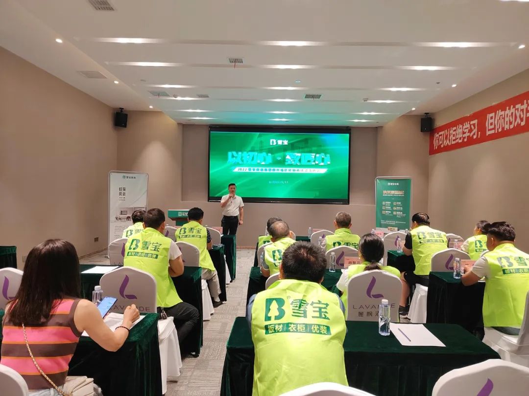 活動現(xiàn)場,雪寶華南營銷中心主動營銷部張經(jīng)理詳細(xì)講解雪寶優(yōu)裝落地運營及介紹雪寶PET產(chǎn)品。從現(xiàn)狀分析、品牌定制、生產(chǎn)加工、市場競品等方面深入探討以及明確落地優(yōu)裝的必然性,圍繞終端形象、門店運營、團隊管理、渠道開發(fā)、生產(chǎn)賦能、設(shè)計賦能、客戶維護等維度剖析雪寶優(yōu)裝的先進性和優(yōu)越性。通過實踐與發(fā)展證明,以及雪寶優(yōu)裝取得的顯著成效,充分說明我們從傳統(tǒng)板材營商轉(zhuǎn)型到雪寶優(yōu)裝這一條路是行得通的!