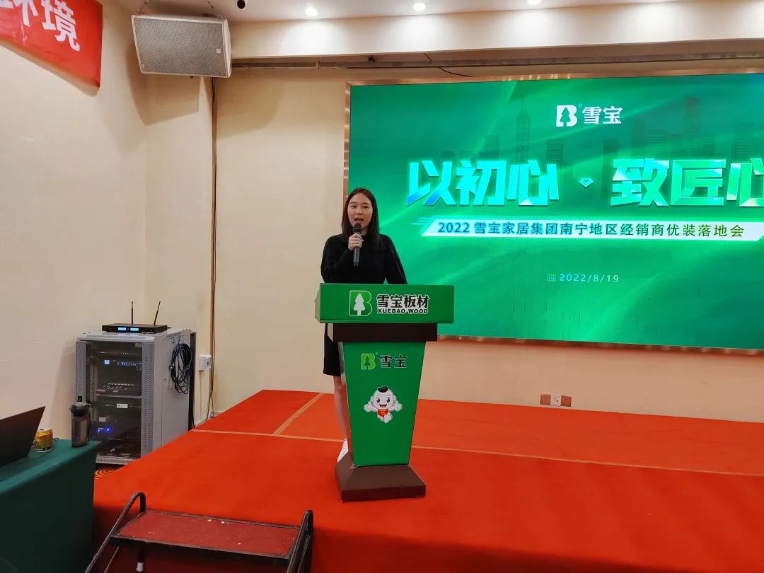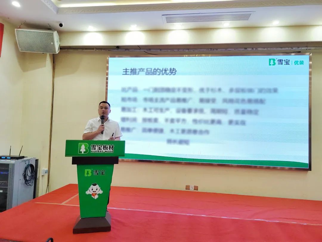 區(qū)域經(jīng)理羅興進(jìn)行雪寶品牌介紹,從品牌硬核實(shí)力、核心定位、獎(jiǎng)項(xiàng)榮譽(yù)、重大事件、行業(yè)口碑等方面深入闡述,突出強(qiáng)化“雪寶板材兒童房健康板”的獨(dú)特差異化核心優(yōu)勢(shì)和行業(yè)地位。
