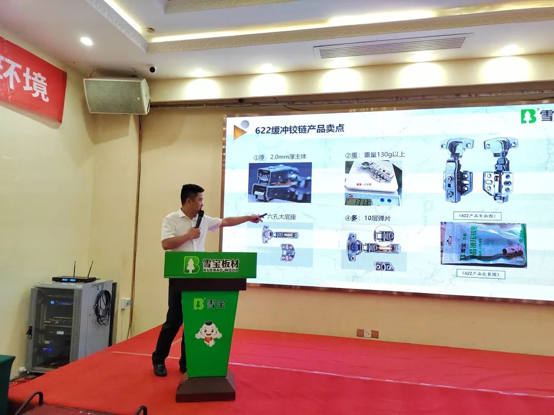 好產(chǎn)品價(jià)值的直接體現(xiàn)離不開專業(yè)的產(chǎn)品知識(shí)宣導(dǎo)。會(huì)上,五金部易磊進(jìn)行了雪寶五金產(chǎn)品的介紹,雪寶華南優(yōu)裝部經(jīng)理譚勤智作雪寶PET產(chǎn)品的介紹。