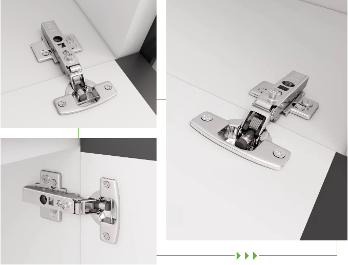 890超級(jí)靜音鉸鏈采用先進(jìn)的兩段力結(jié)構(gòu),前半段彈簧處于不工作狀態(tài),即柜門(mén)開(kāi)啟的一瞬間門(mén)板不會(huì)來(lái)回晃動(dòng)(普通液壓鉸鏈開(kāi)啟柜門(mén)的一瞬間,門(mén)板都會(huì)晃動(dòng)3-5下),能夠保證板材對(duì)螺絲握釘力穩(wěn)定性,很好的起到了保柜護(hù)門(mén)的效果,并且柜門(mén)開(kāi)啟和關(guān)閉時(shí)手感輕盈。