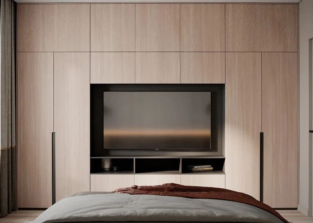 有的業(yè)主會(huì)選擇將電視搬進(jìn)臥室,將電視柜與定制衣柜進(jìn)行組合設(shè)計(jì),既能滿足日常休閑需求,還能解決物品收納的問(wèn)題,一舉兩得。