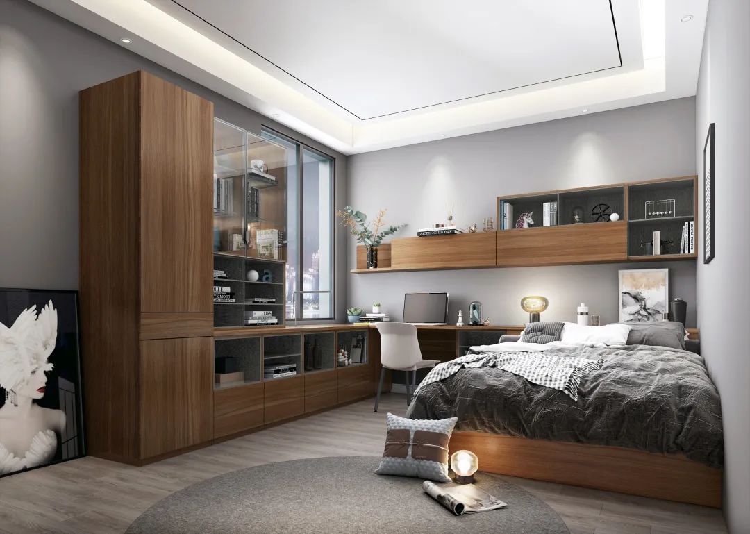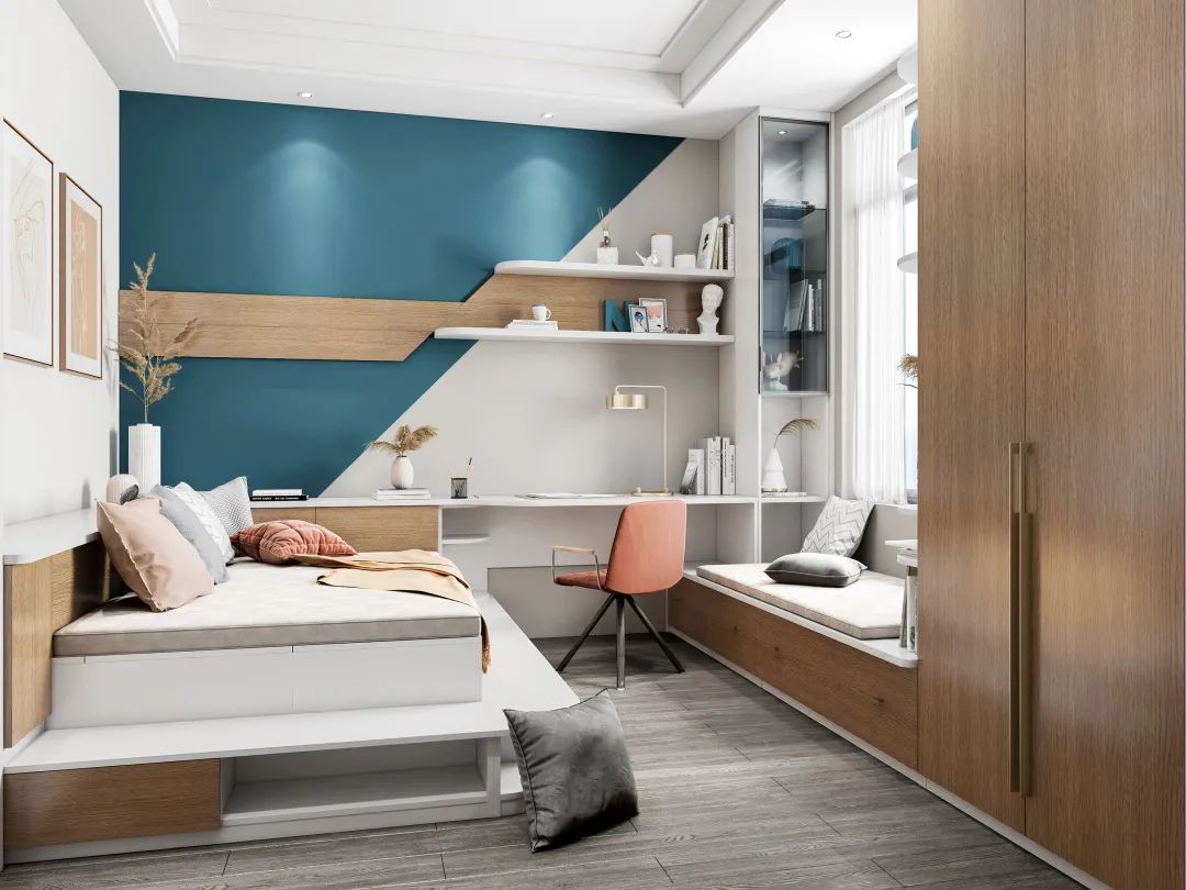 這種“功能三合一”的設計被廣泛運用在兒童房或多功能房,它可以同時滿足休息、學習和收納需求,實用且美觀。這種“柜+桌+床”的設計,不僅有舒適的工作區(qū),儲物收納+休閑會客+臨時客臥,一次滿足四大需求。