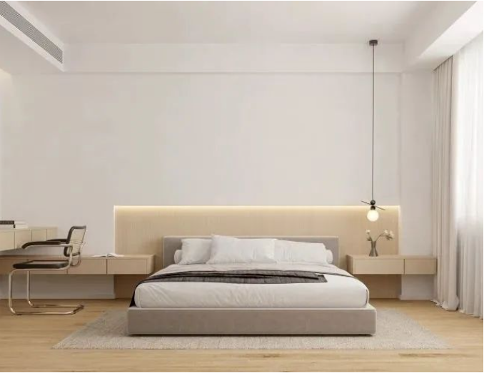 相對(duì)于落地式床頭柜,懸空式更加輕巧美觀,能夠有效凸顯設(shè)計(jì),緩解臥室的厚重感,減少衛(wèi)生死角。
