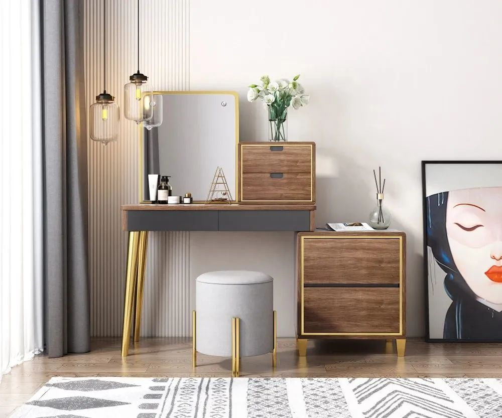 女為悅己者容的時(shí)代已經(jīng)過(guò)去了,現(xiàn)在女生化妝更多的是為了讓自己心情好。將梳妝臺(tái)與床頭柜合二為一,可謂是強(qiáng)強(qiáng)聯(lián)合。
