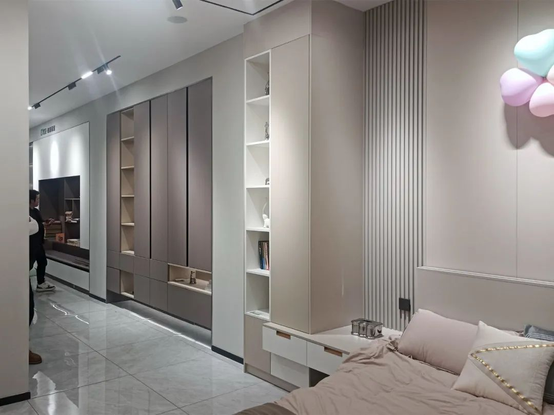 雪寶優(yōu)裝門店基于“材料展廳、體驗(yàn)式展廳、共享展廳”3大功能空間定位,大大提高了門店的競爭力。材料展廳即指裝修材料透明化,消費(fèi)者可以清楚看到裝修中使用的每一個材料,質(zhì)量更放心。體驗(yàn)式展廳則是把當(dāng)下流行的設(shè)計(jì)風(fēng)格呈現(xiàn)出來,通過合理搭配柜體柜門花色以及五金產(chǎn)品,讓消費(fèi)者更直觀做出選擇,真正實(shí)現(xiàn)所見即所得。而共享展廳則是滿足了木工師傅、設(shè)計(jì)工作室、裝飾公司等合作渠道的訴求,通過展示材料、呈現(xiàn)樣柜、真實(shí)案例,讓業(yè)主朋友買得安心、用得放心。