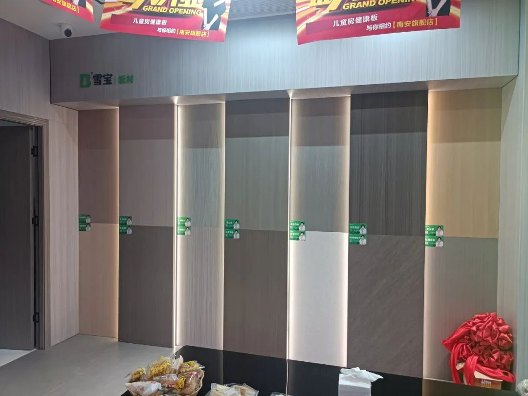 雪寶定位兒童房健康板的獨(dú)特差異化優(yōu)勢(shì),讓品牌理念和高環(huán)保高品質(zhì)產(chǎn)品等標(biāo)簽深入人心。雪寶泉州南安店在終端形象設(shè)計(jì)上,緊跟時(shí)代潮流,在門(mén)店產(chǎn)品陳列、全屋空間展示、門(mén)墻柜一體化設(shè)計(jì)等方面大力迎合消費(fèi)趨勢(shì),營(yíng)造居家氛圍體驗(yàn)感。