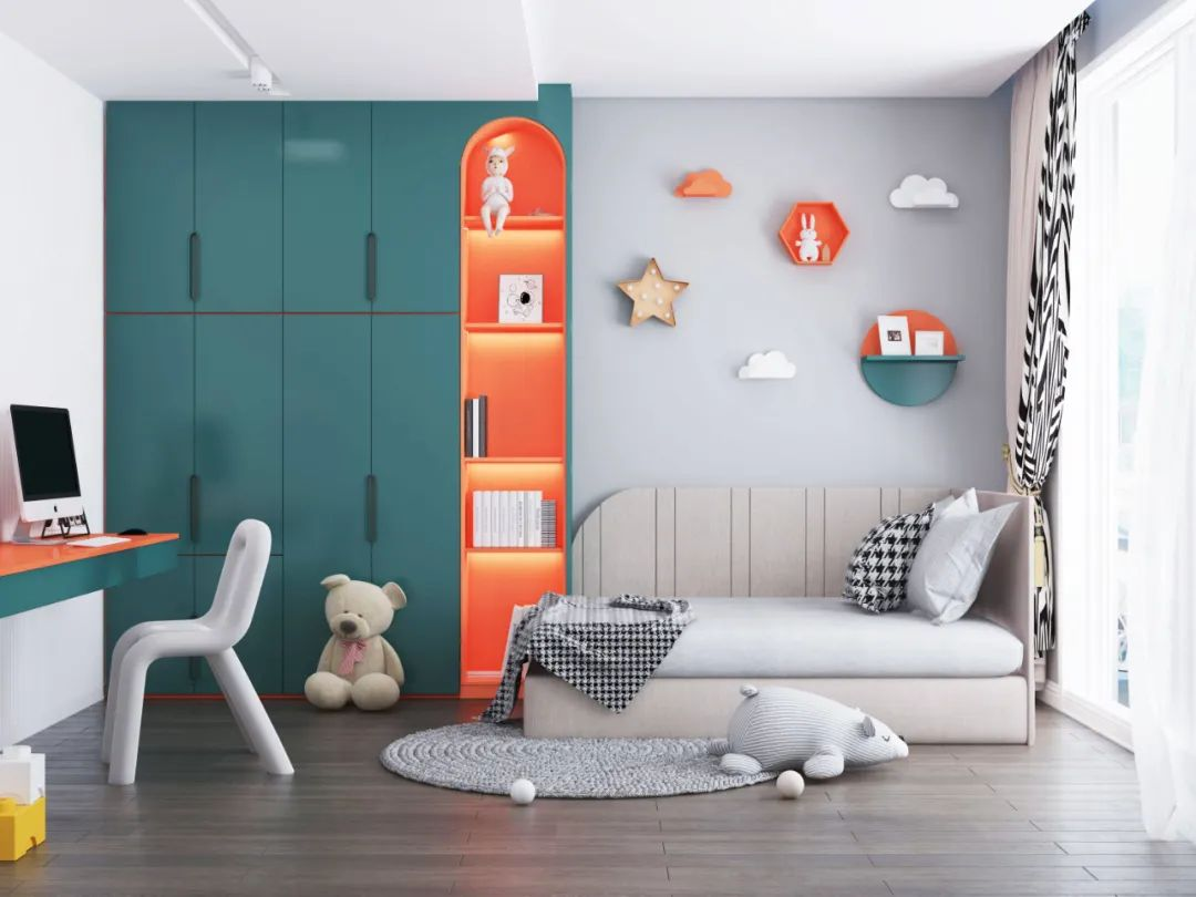 兒童房對(duì)于孩子而言不僅是休息的地方,也是玩耍、學(xué)習(xí)的地方,所以在定制家具時(shí),最好是定制實(shí)木家具,實(shí)木家具相較其他材質(zhì)更環(huán)保,這樣可以可充分保障孩子健康。板材的花色也很重要,雪寶優(yōu)裝定制配備多款流行花色,讓孩子在兒童房?jī)?nèi)盡情享受多彩的童趣生活。