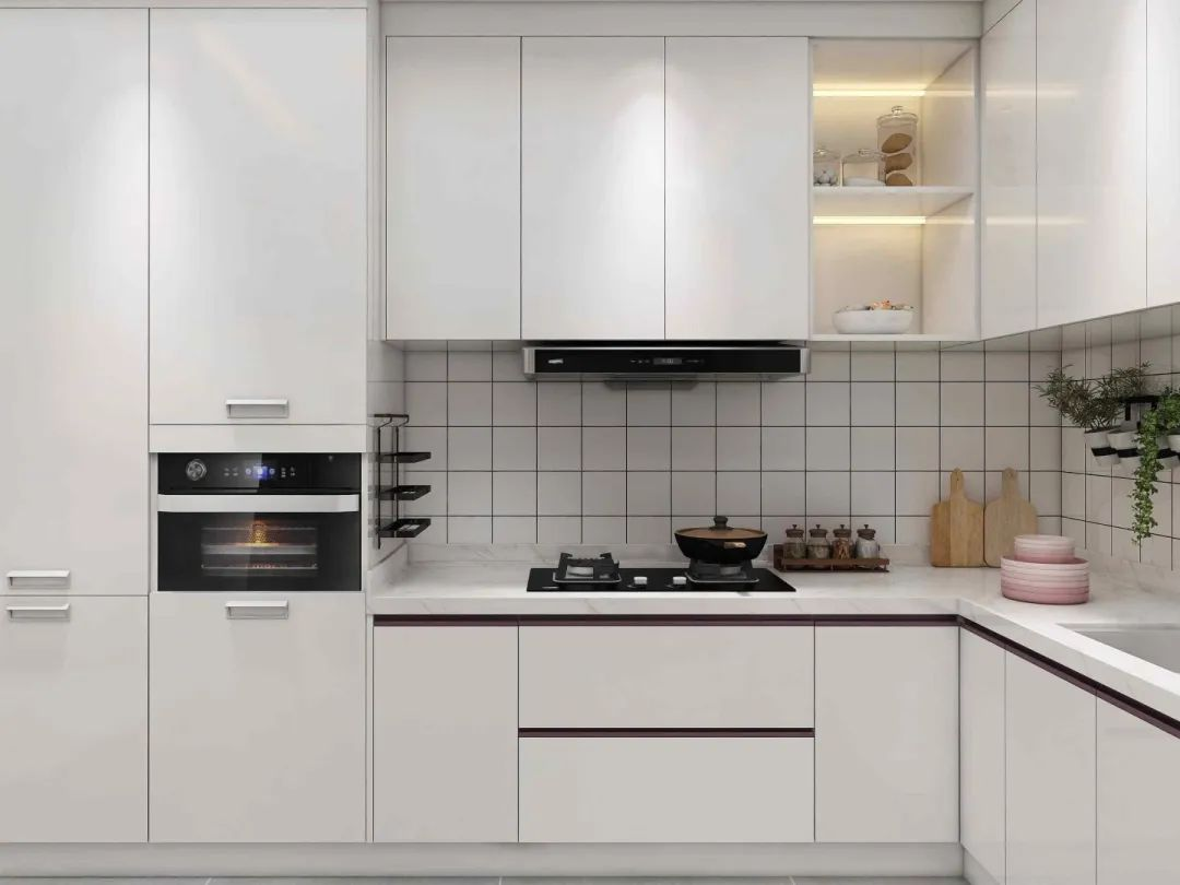 而且廚房屬于油煙最多的地方,清潔頻率最高,同時也最為麻煩,無拉手柜門,清洗方便,完全不存在死角。