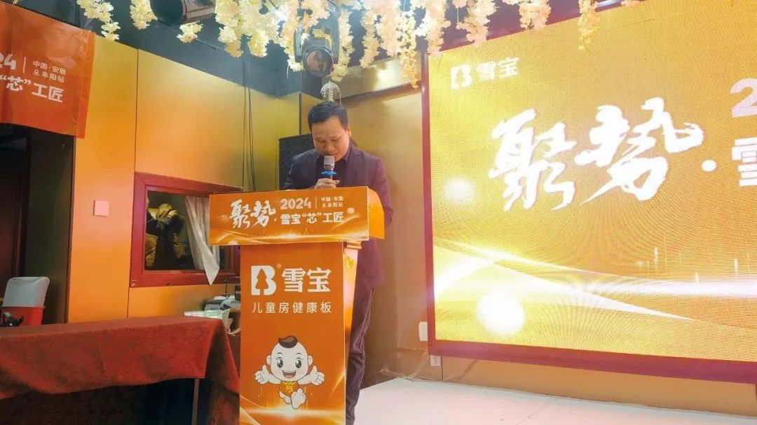 會(huì)上,雪寶品牌華北區(qū)安徽阜陽(yáng)運(yùn)營(yíng)中心負(fù)責(zé)人余總現(xiàn)場(chǎng)致詞,表示:“雪寶一直兢兢業(yè)業(yè)深耕環(huán)保產(chǎn)品領(lǐng)域,作為“兒童房健康板”環(huán)保板材先河的開啟者,將“品質(zhì)、創(chuàng)新、服務(wù)、共贏”的價(jià)值觀深入心智,與廣大合作伙伴的關(guān)系更為親密無(wú)間,大家互利共贏。忠于市場(chǎng),服務(wù)客戶,把控產(chǎn)品,提高品質(zhì),我們必將迎來(lái)更大的成就。在共同努力下,我很有信心在2024年實(shí)現(xiàn)業(yè)績(jī)?cè)偕弦粚訕牵?rdquo;