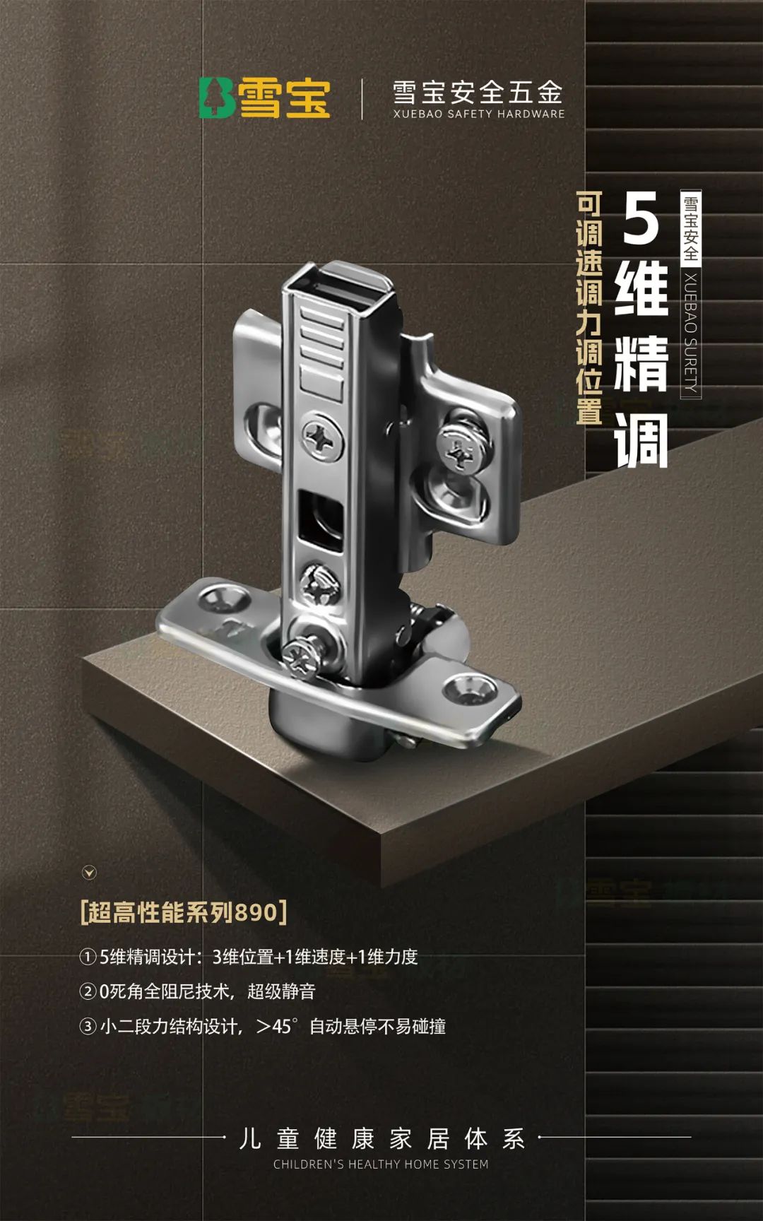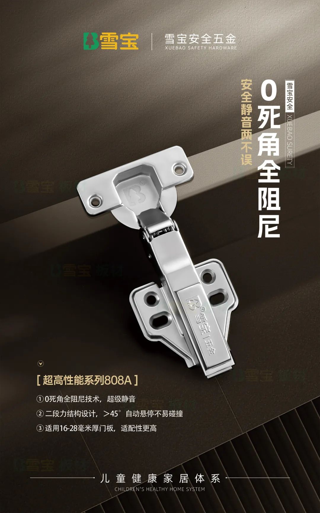 同時,在基礎五金柜門鉸鏈、門板拉手等產(chǎn)品設計上,安全防夾防撞、靜音緩沖自懸停等功能加持,以及圓弧角、圓弧造型的設計,無不凸顯我們對兒童、老人健康細致入微的安全守護。
