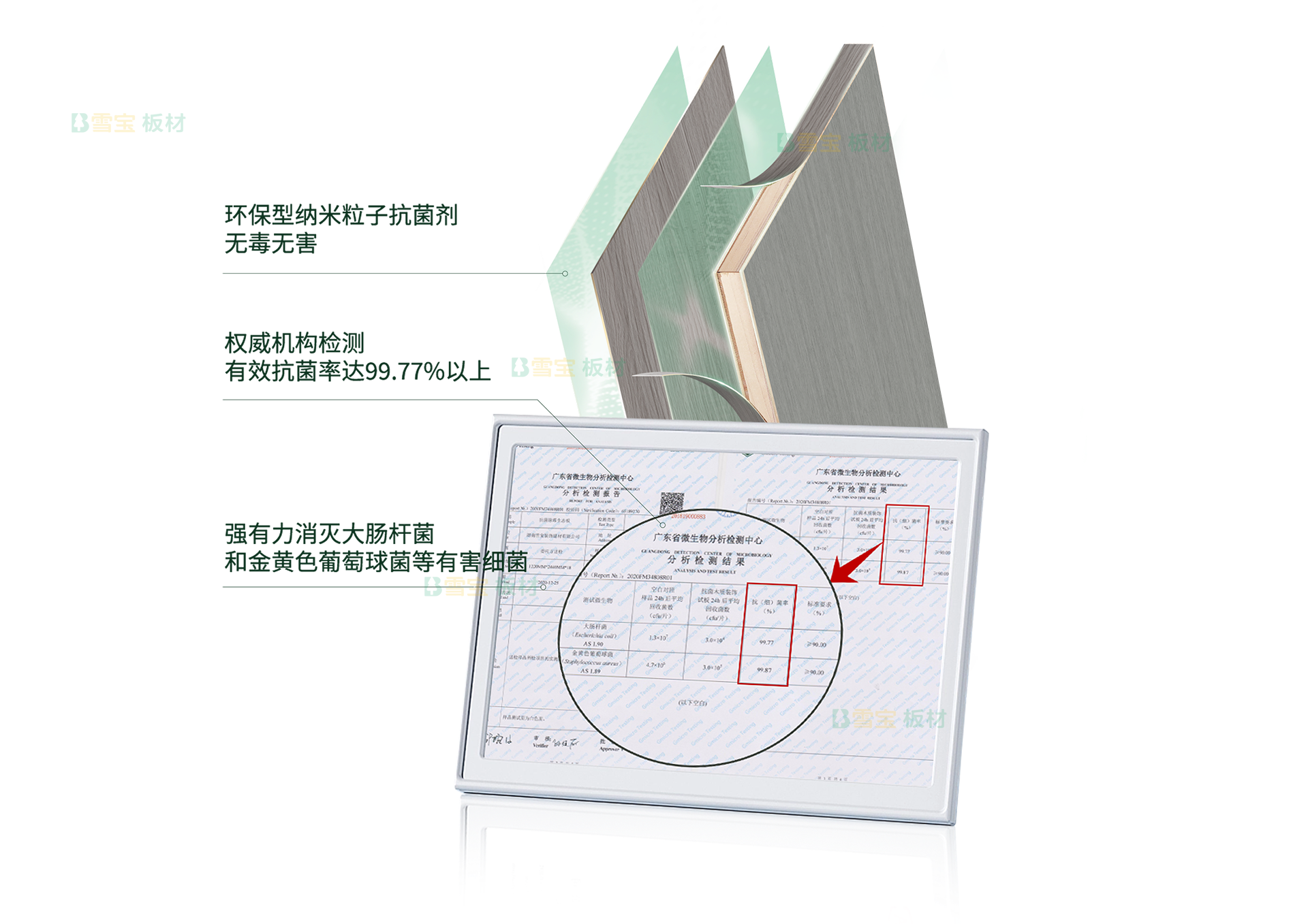 這個(gè)時(shí)候,有著抗菌、防霉雙重功能的雪寶抗菌防霉板方能大顯本領(lǐng)了,其優(yōu)異的抗菌防霉表現(xiàn)讓板材到空間的環(huán)保躍級(jí),實(shí)現(xiàn)24小時(shí)持續(xù)守護(hù),能夠貼心呵護(hù)家人的健康生活。