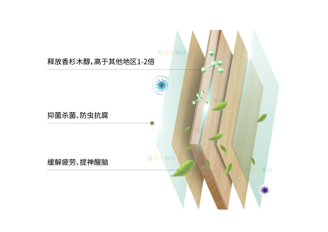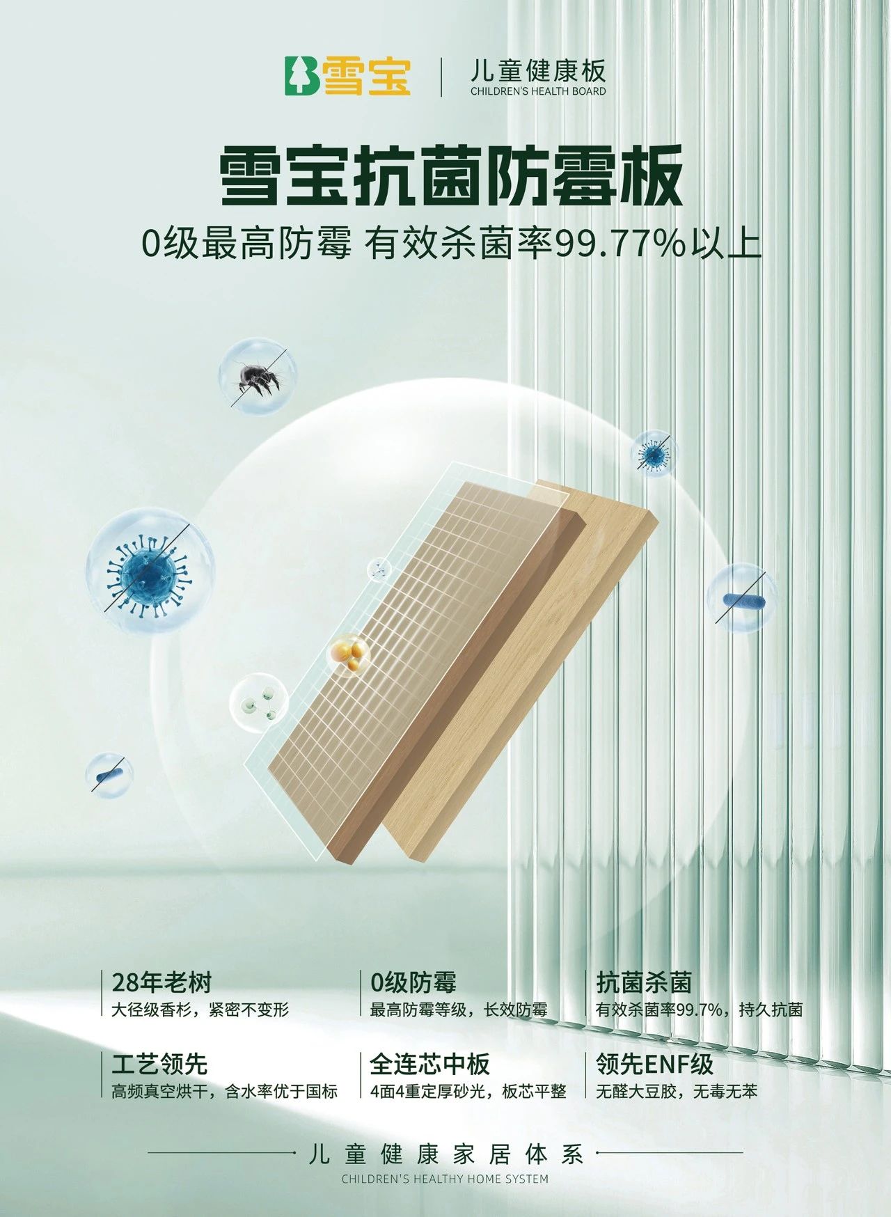 抗菌防霉!凈醛負(fù)離子!抗蟲(chóng)蛀!散發(fā)天然原木清香的功能型雪寶板