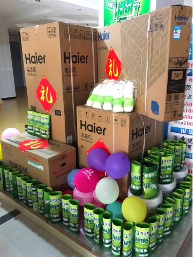 除了行動派的實戰(zhàn),雪寶質(zhì)量過硬的產(chǎn)品和高檔的活動禮品是本次活動的絕對亮點,F(xiàn)場測量雪寶森林有氧板的負(fù)離子釋放量,專賣店內(nèi)外醒目的品牌宣傳和堆成小山高的贈品,無時無刻不彰顯著雪寶板材的氣魄和實力。