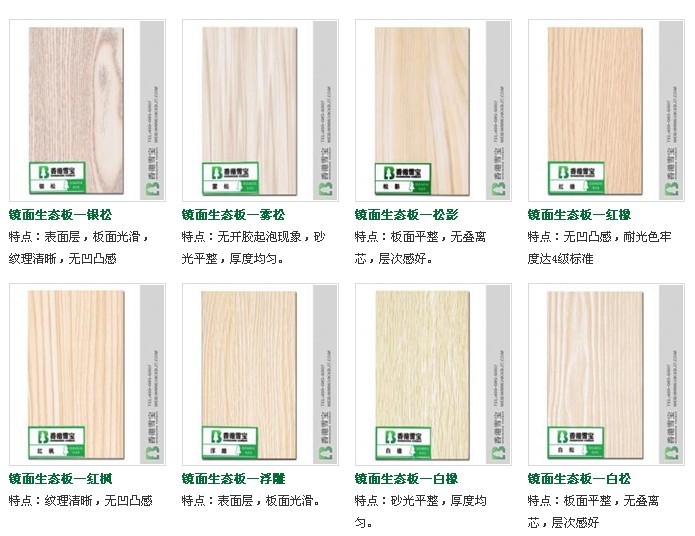 雪寶鏡面生態(tài)板標(biāo)準(zhǔn),其基材,板面平整,無疊離芯,層次感好。無開膠起泡現(xiàn)象,砂光平整,厚度均勻。表面層,板面光滑,紋理清晰,無凹凸感,耐光色牢度達(dá)4級標(biāo)準(zhǔn),耐色裂達(dá)1級以上,耐磨350R,膠水為E0,100攝氏底水煮8個小時不開膠。