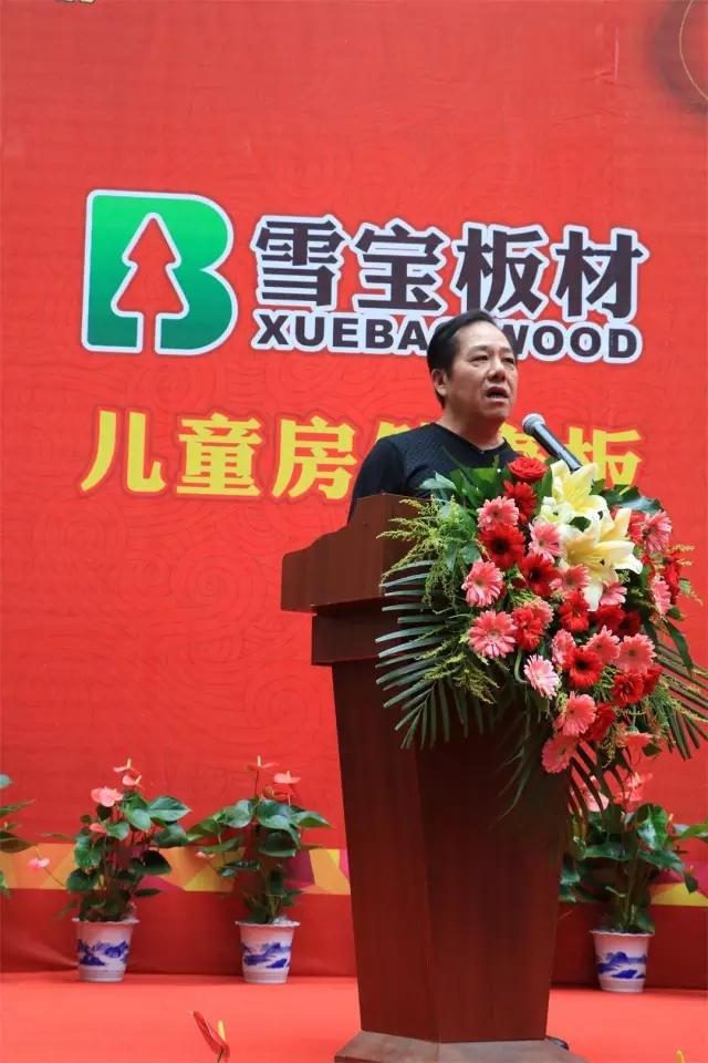 ▲雪寶板材國內(nèi)營銷中心總經(jīng)理李振先生為開業(yè)典禮致辭