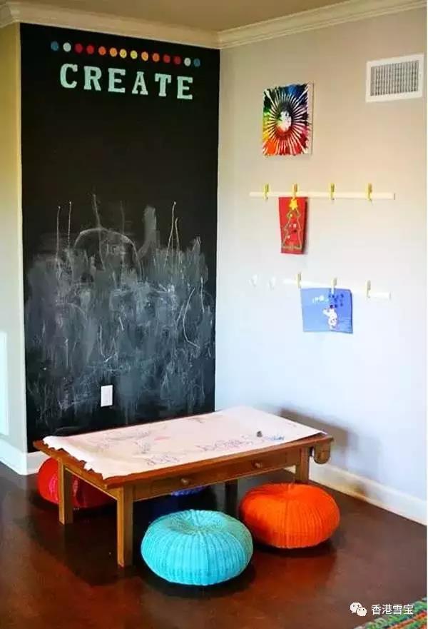 ▲孩童時期正是想象力最旺盛的時候,何不給孩子一個發(fā)揮的空間呢?一面黑板墻正好可以滿足孩子的需求和想象。