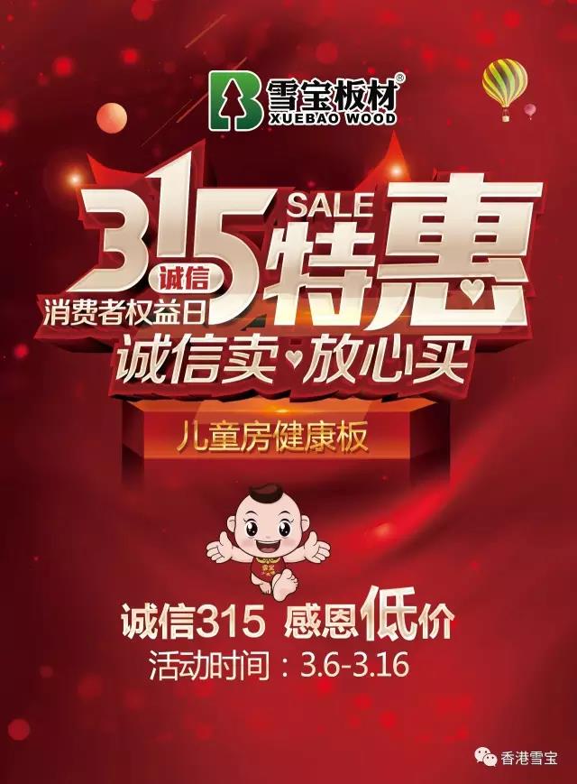 雪寶板材3·15誠信日,火熱特惠全國!