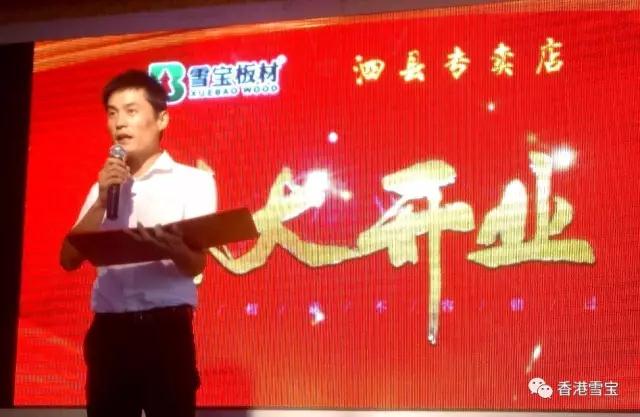 ▲雪寶板材安徽泗縣專賣店戚總為開業(yè)典禮致辭